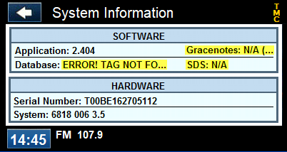 | Gracenotes | HDD not readable | (Artist, title, album and genre database) |